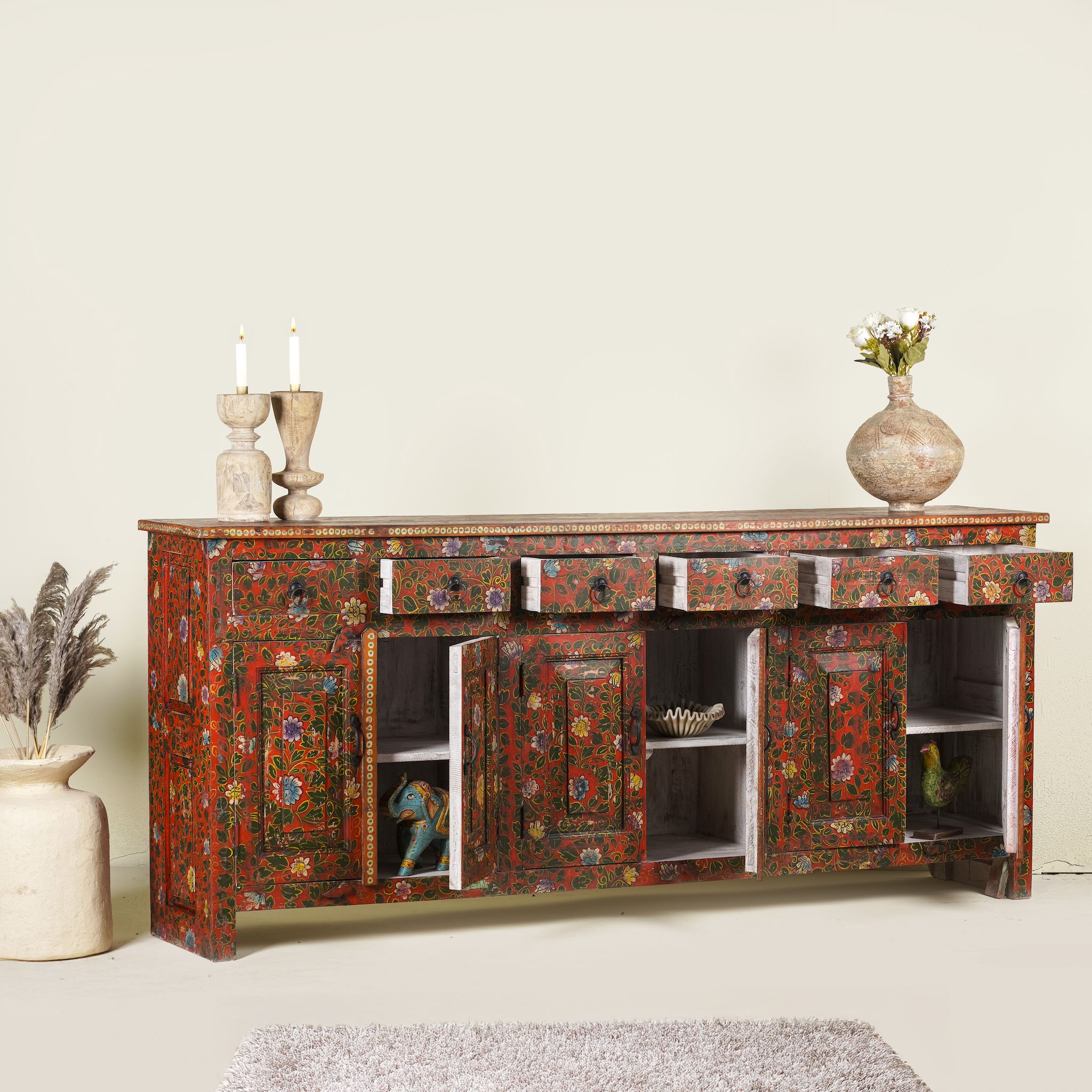 - Colorfully Designed: The colorful sideboards, hand-painted with Indian motifs, will draw everyone's gaze in any living space and ensure an extraordinary eye-catcher.