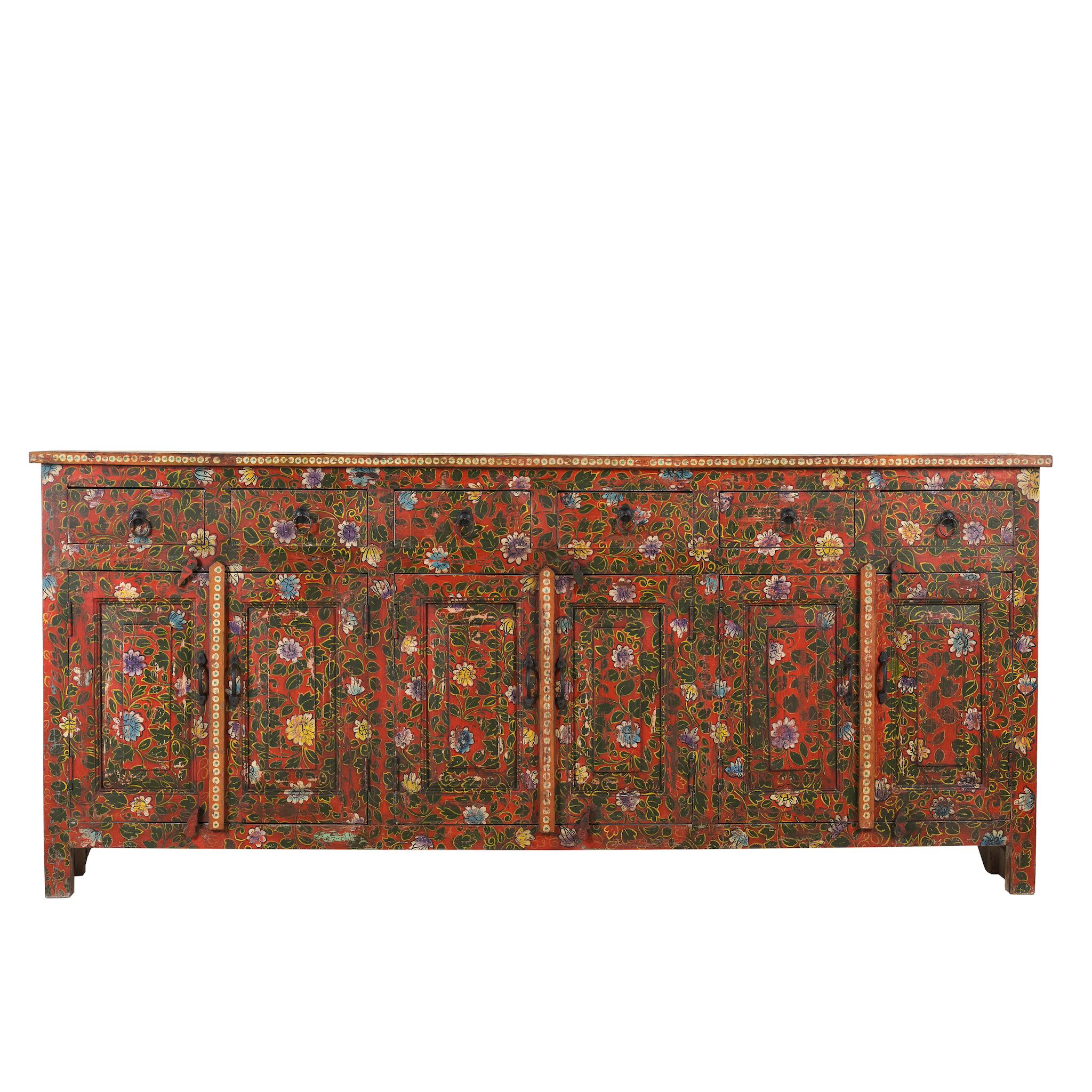 Carvings and Paintings: Detailed carvings and vibrant colors give the oriental sideboards their special exoticism. Typical decorations include floral patterns, geometric shapes, or animal motifs. The spectrum of colors is characterized by high vibrancy and ranges from blue to red and green to gold.