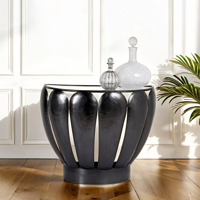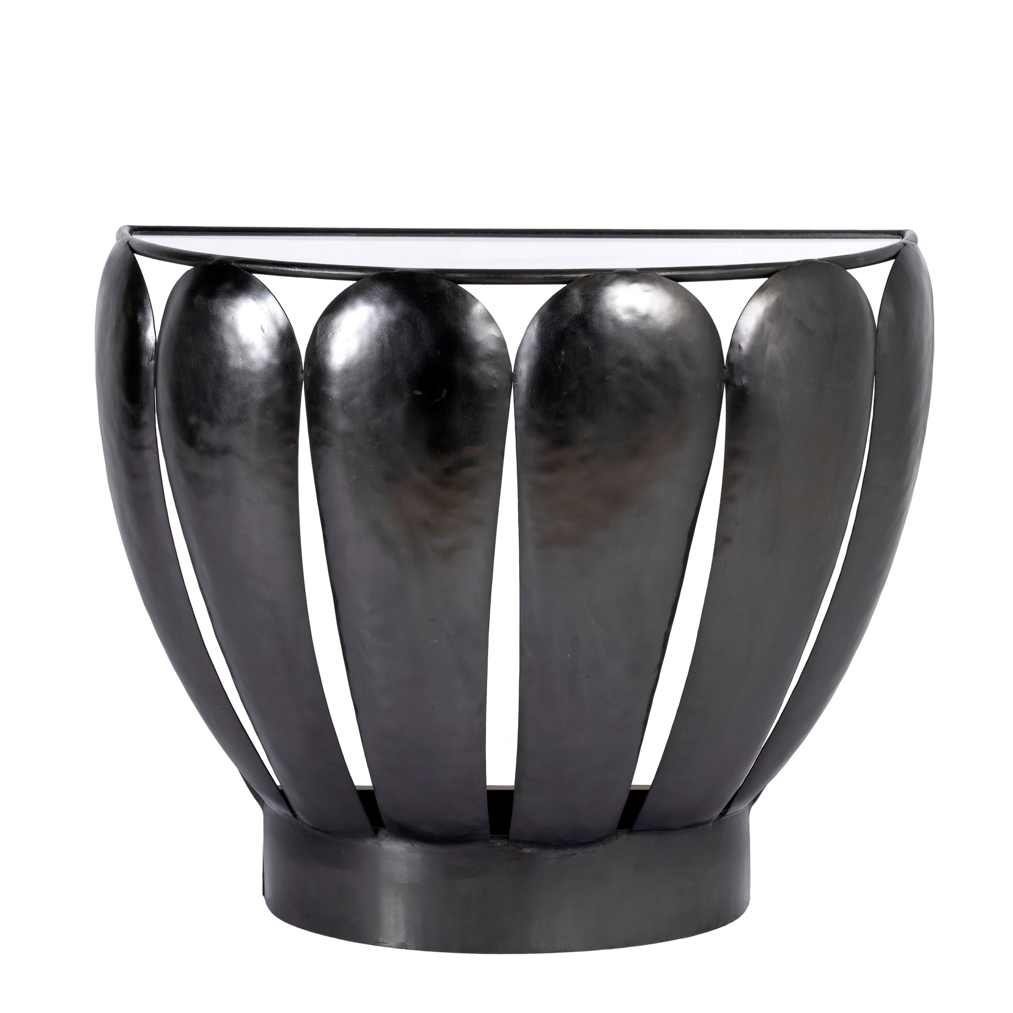- Demilune: Such a table has a semi-circular shape, making it perfect against a wall. No wonder this variant of the vintage console table is especially popular in narrow hallways or entrance areas.