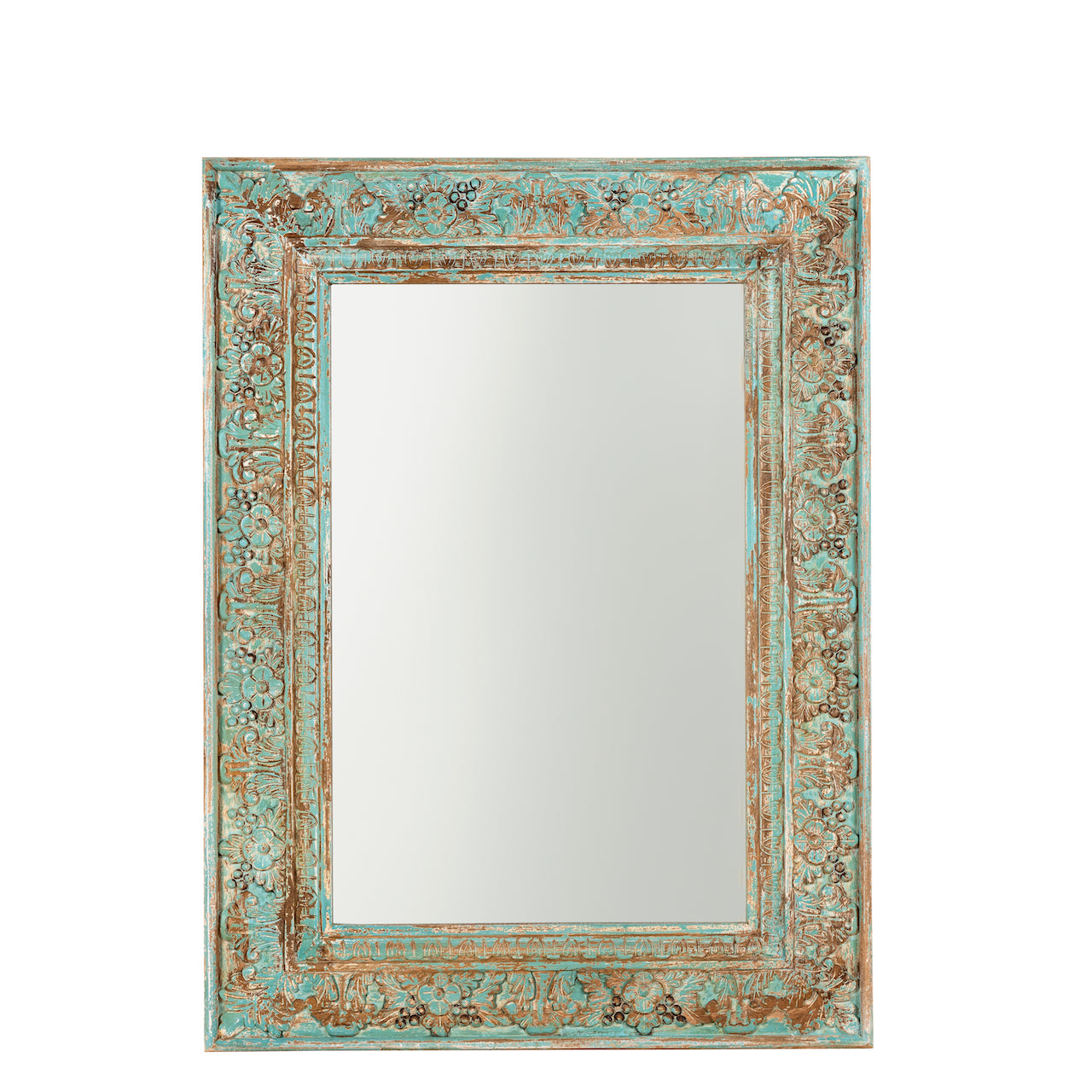 Introducing the Animisha mirror, a stunning piece of Indian craftsmanship. This mirror comes in a beautiful turquoise color and is adorned with intricate hand-carved engravings that highlight the skill of Indian artisans. This mirror adds both a pop of color and a touch of Indian culture to your living space.
