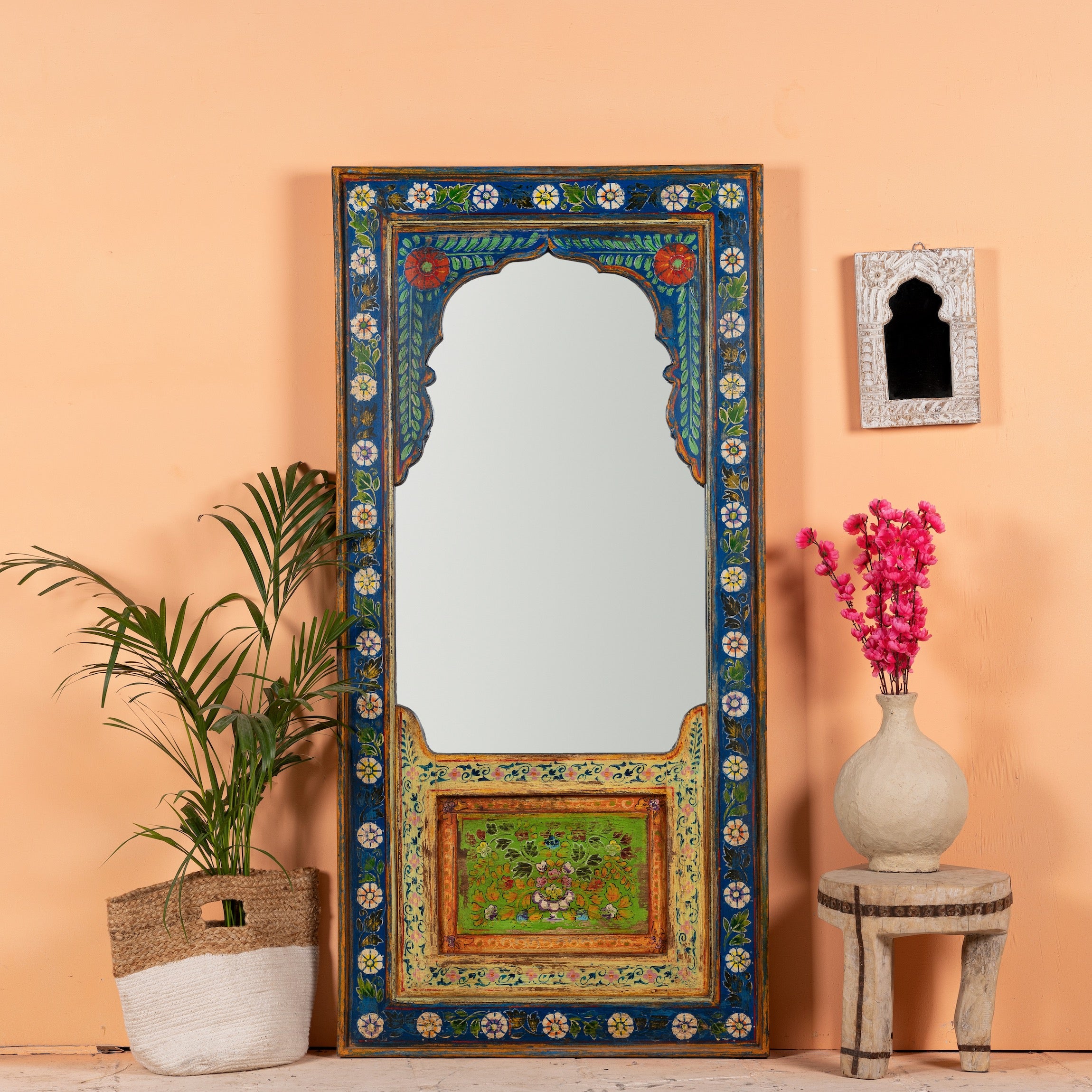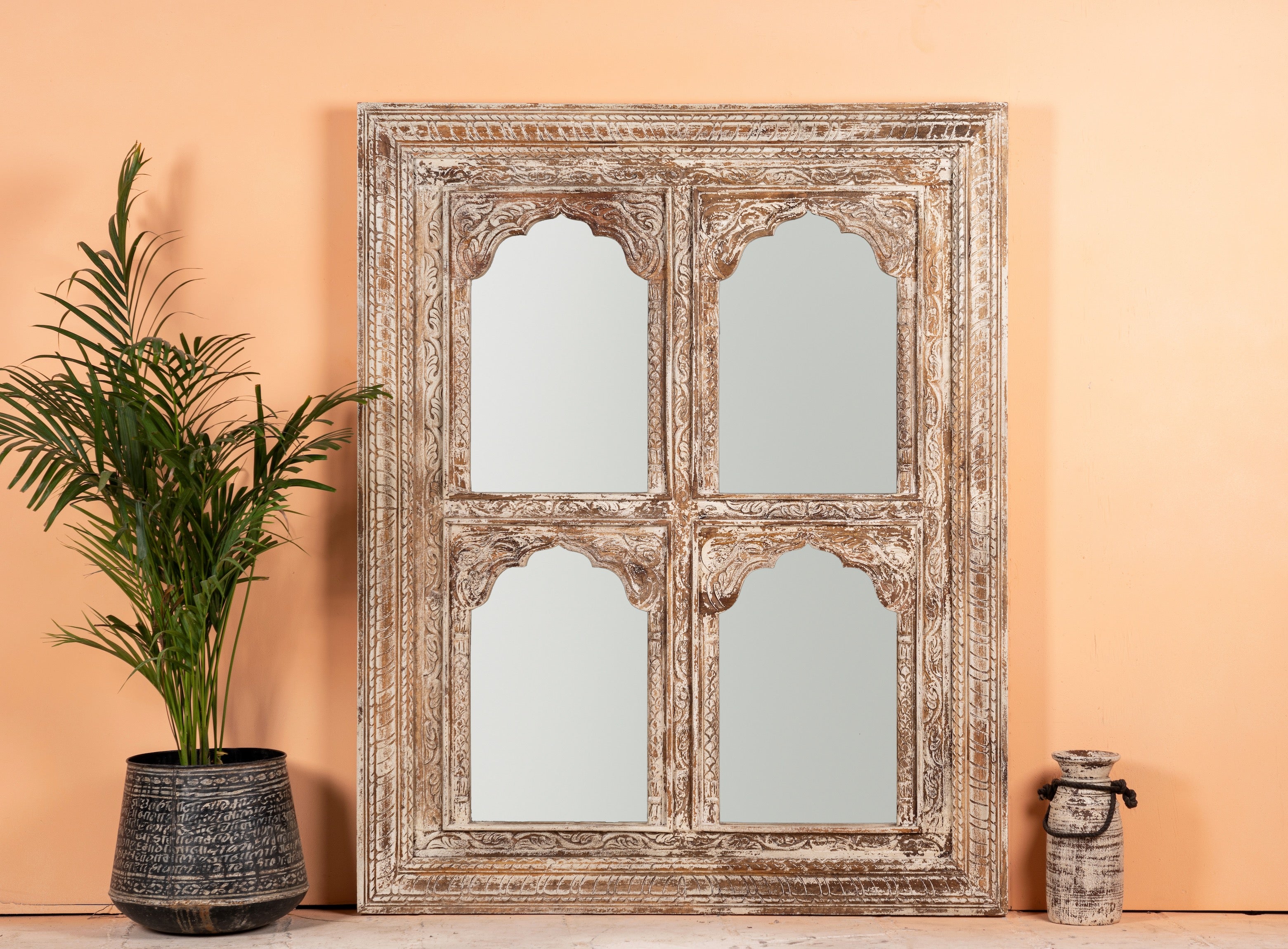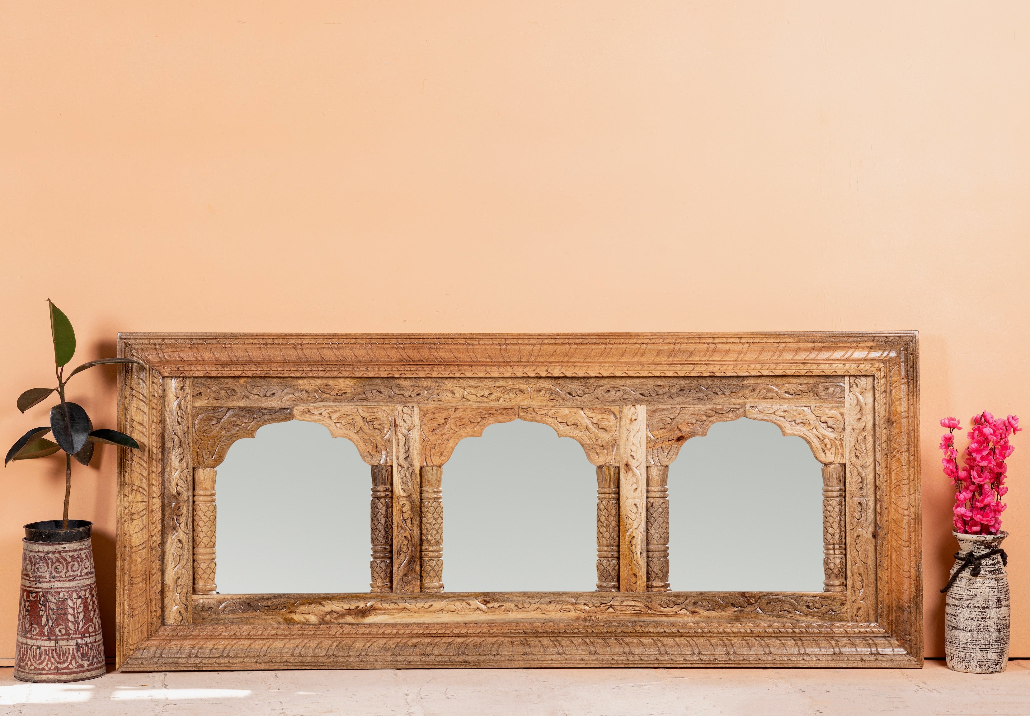 Our interior collection merges vintage and modern designed furniture elements for your home interior. The collections' items range from vintage or Boho style cupboards and beds to sofas, mirrors, exclusive bar tables and accessories.The handcrafted furniture items are mainly made of Teak and Mango wood, decorated with detailed engravings as well as Indian floral patterns.