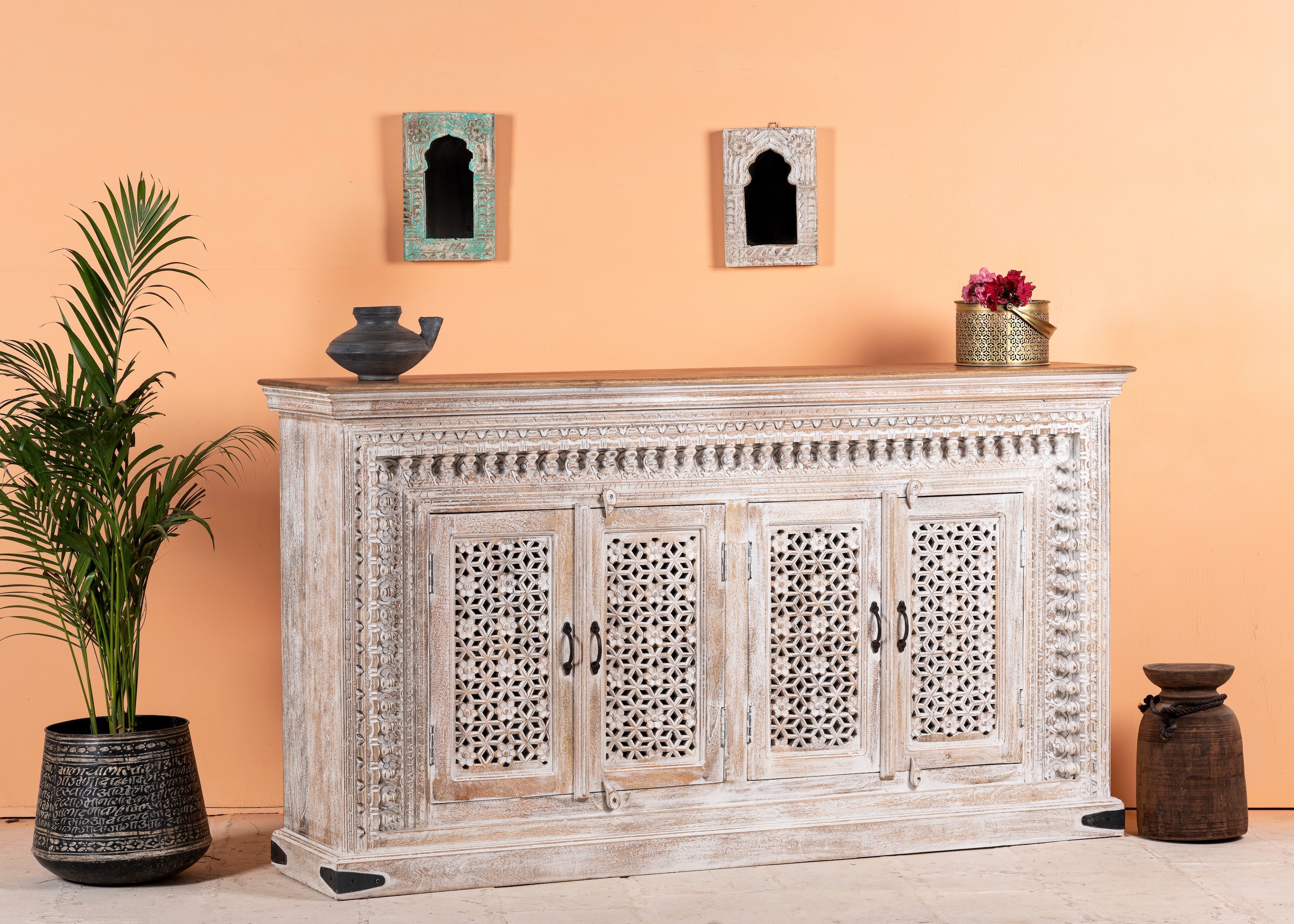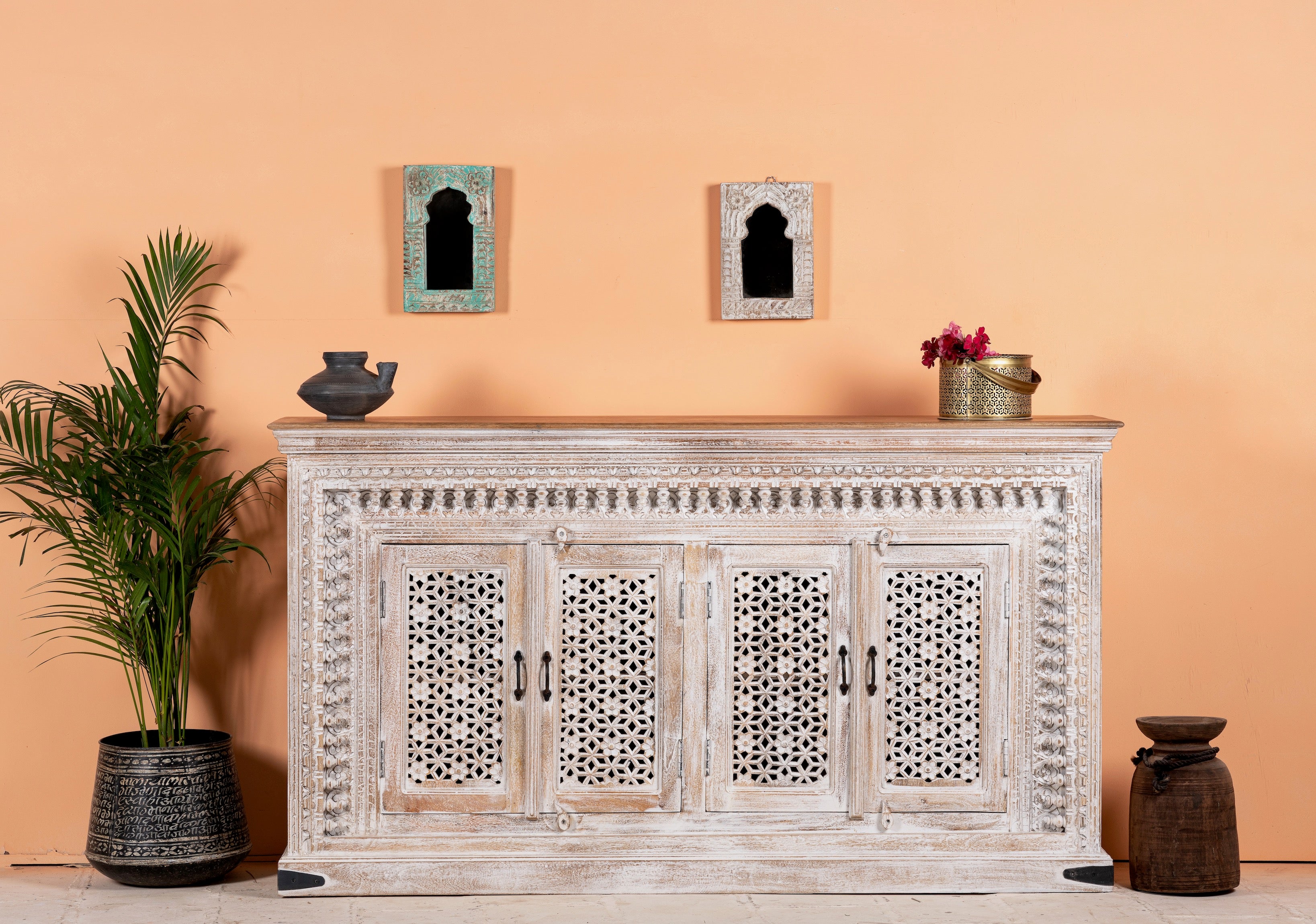 Our interior collection merges vintage and modern designed furniture elements for your home interior. The collections' items range from vintage or Boho style cupboards and beds to sofas, mirrors, exclusive bar tables and accessories.The handcrafted furniture items are mainly made of Teak and Mango wood, decorated with detailed engravings as well as Indian floral patterns.