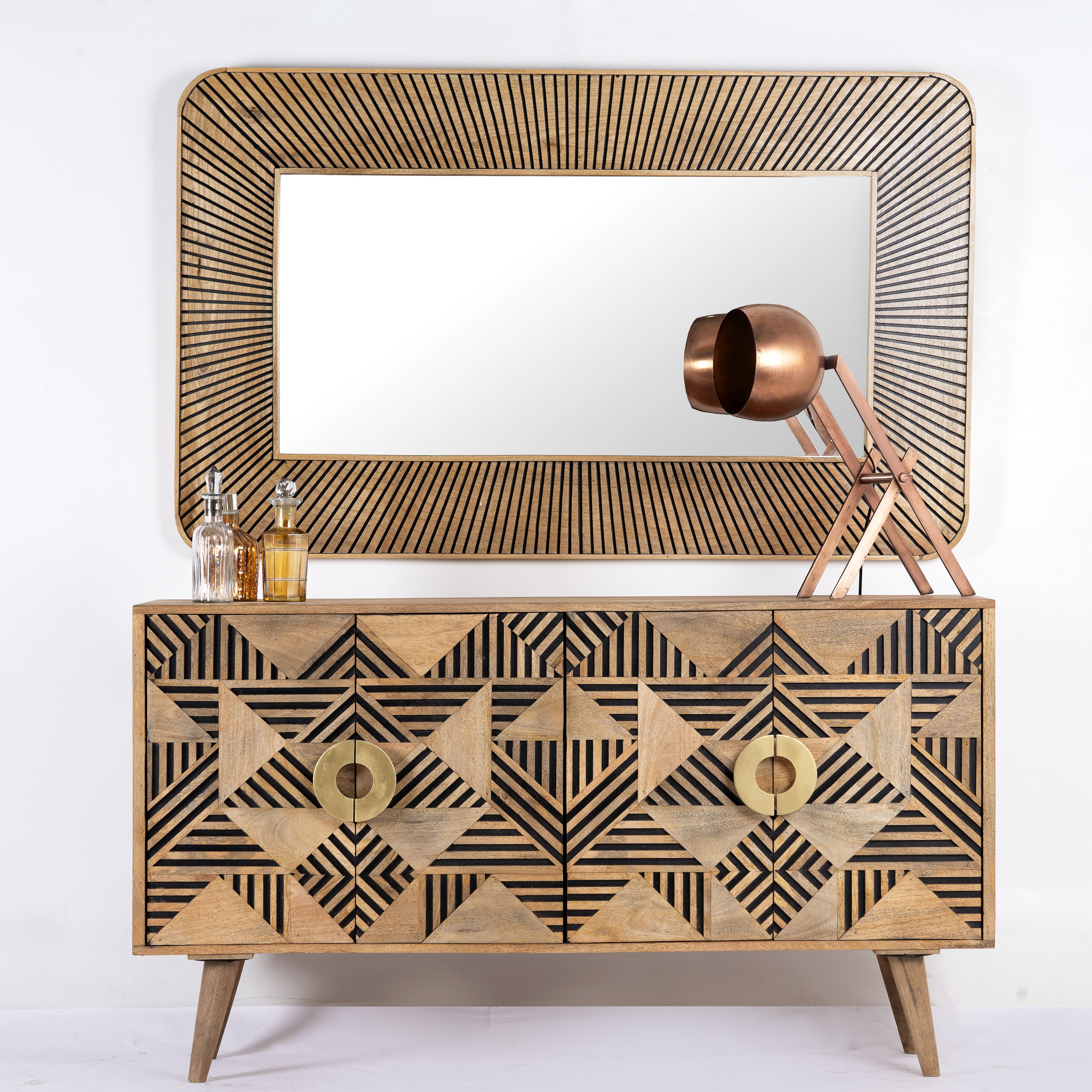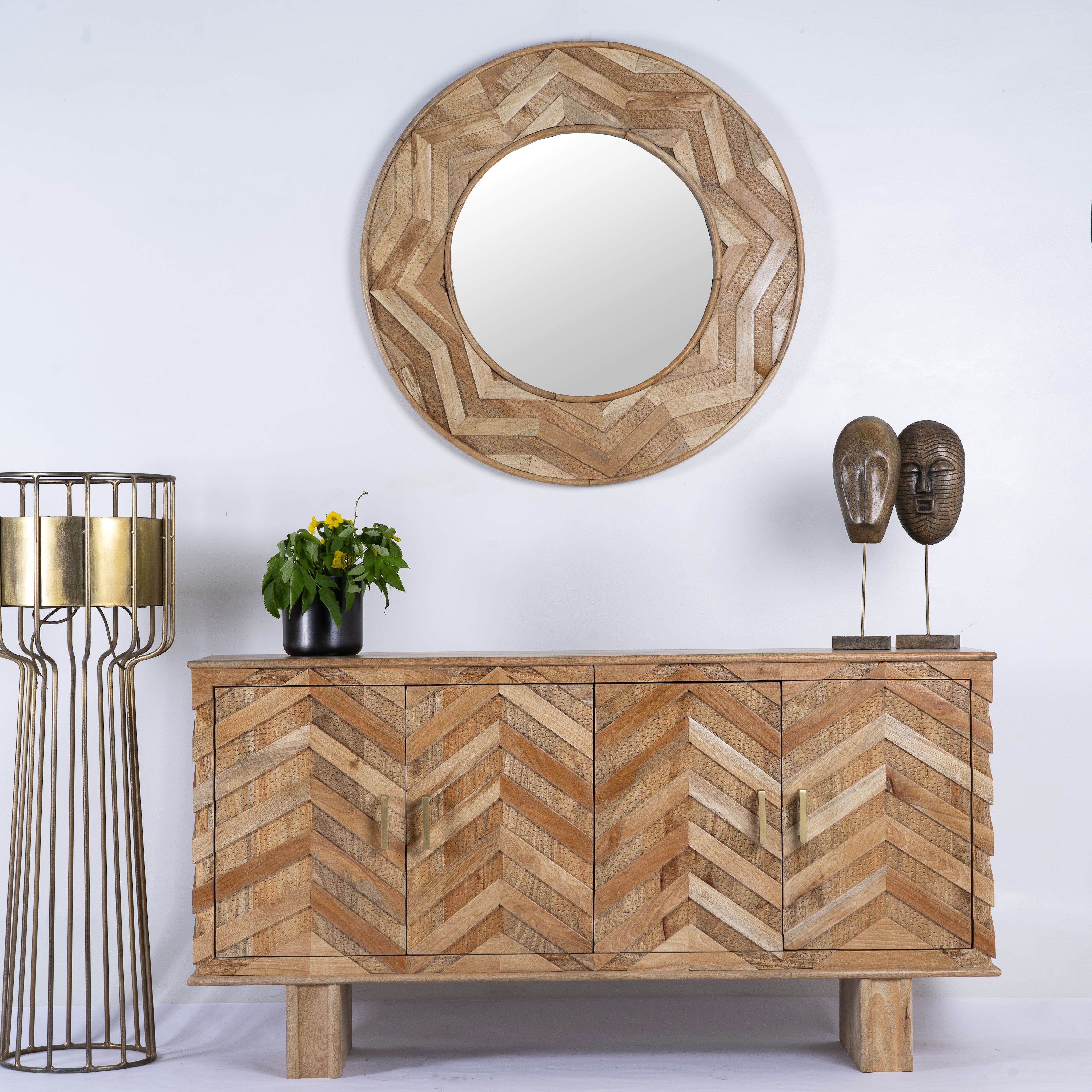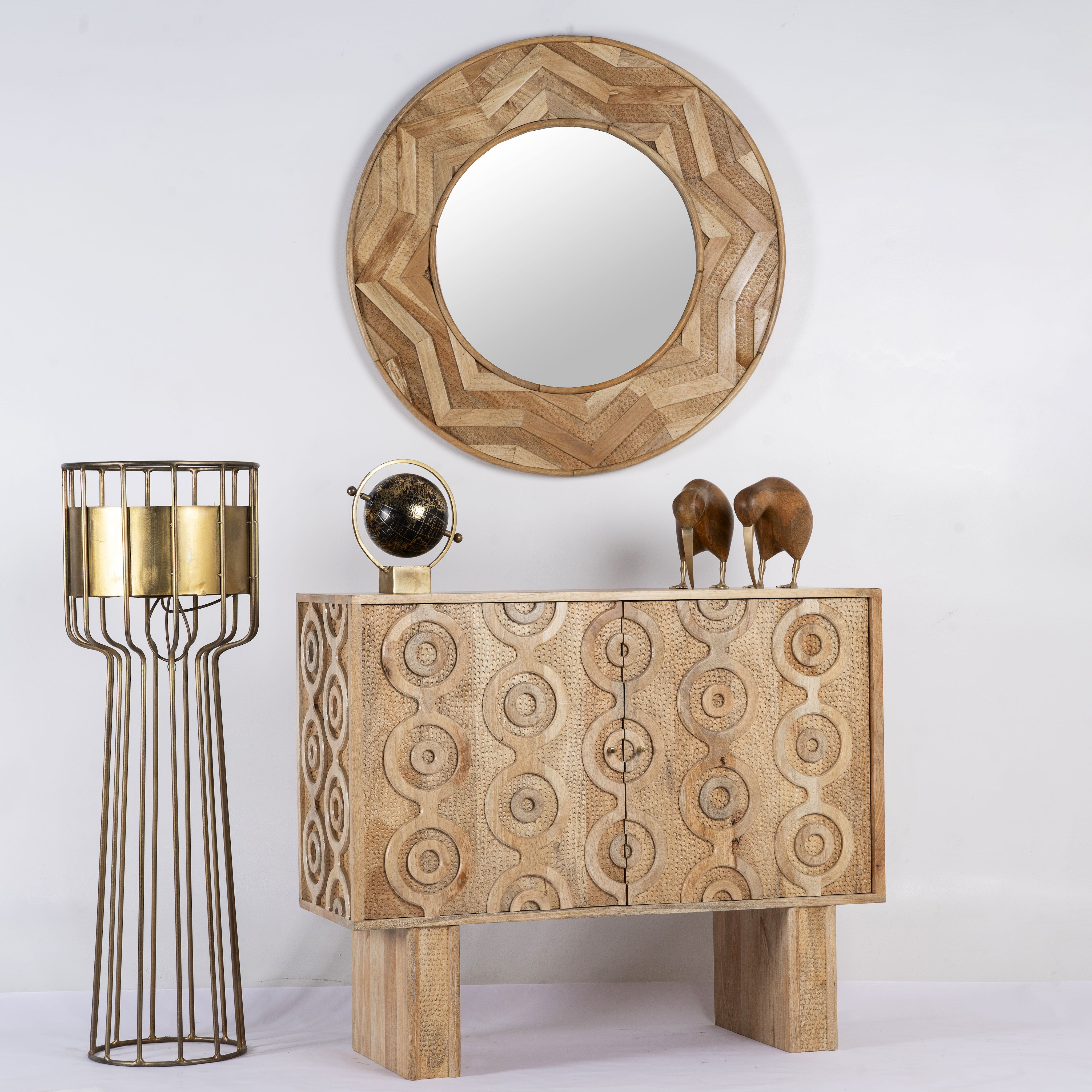 We are experts in Oriental interior style. This expertise is not coincidental, as we ourselves have lived in India for several years, growing to love the country, its culture, and its people. Our excellent connections to India allow us to import authentic Indian furniture. These are crafted in intricate handwork by skilled artisans in small factories in India. We place great importance on ecological manufacturing in harmony with nature. Therefore, we mainly use recycled solid wood. High-quality, authentic, and exotic – our Oriental mirrors and furniture will delight you. Try it out and find your new favorite piece in our online shop.