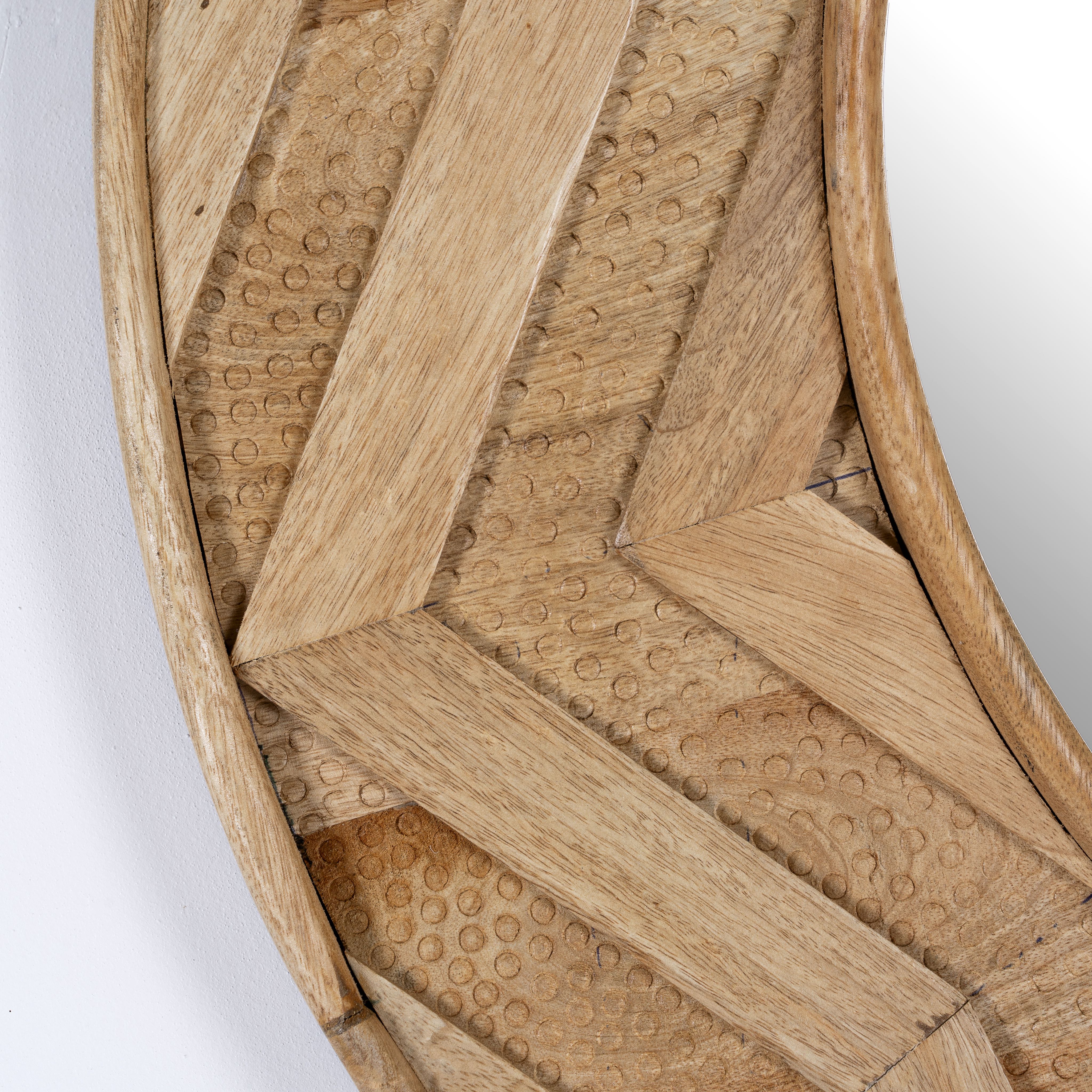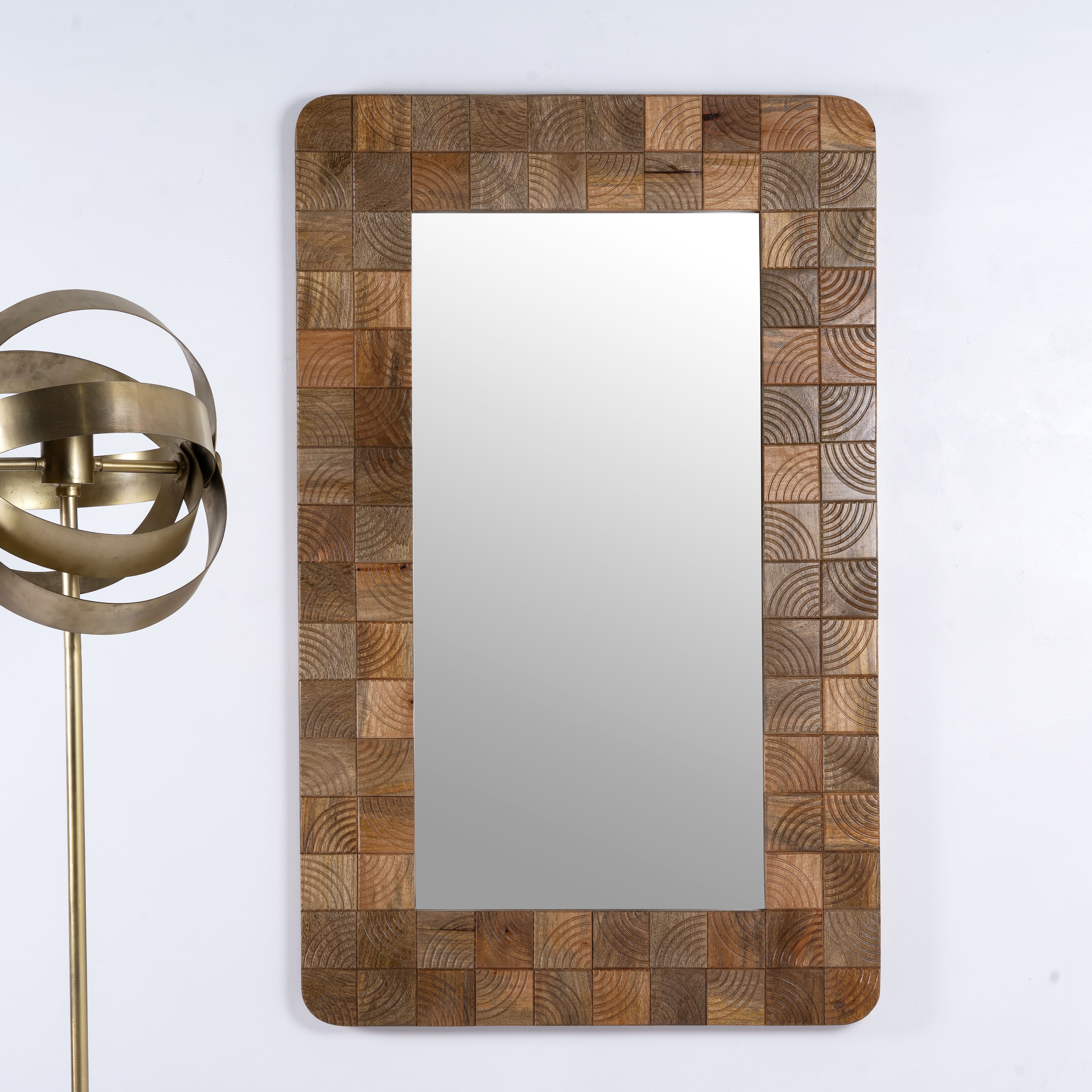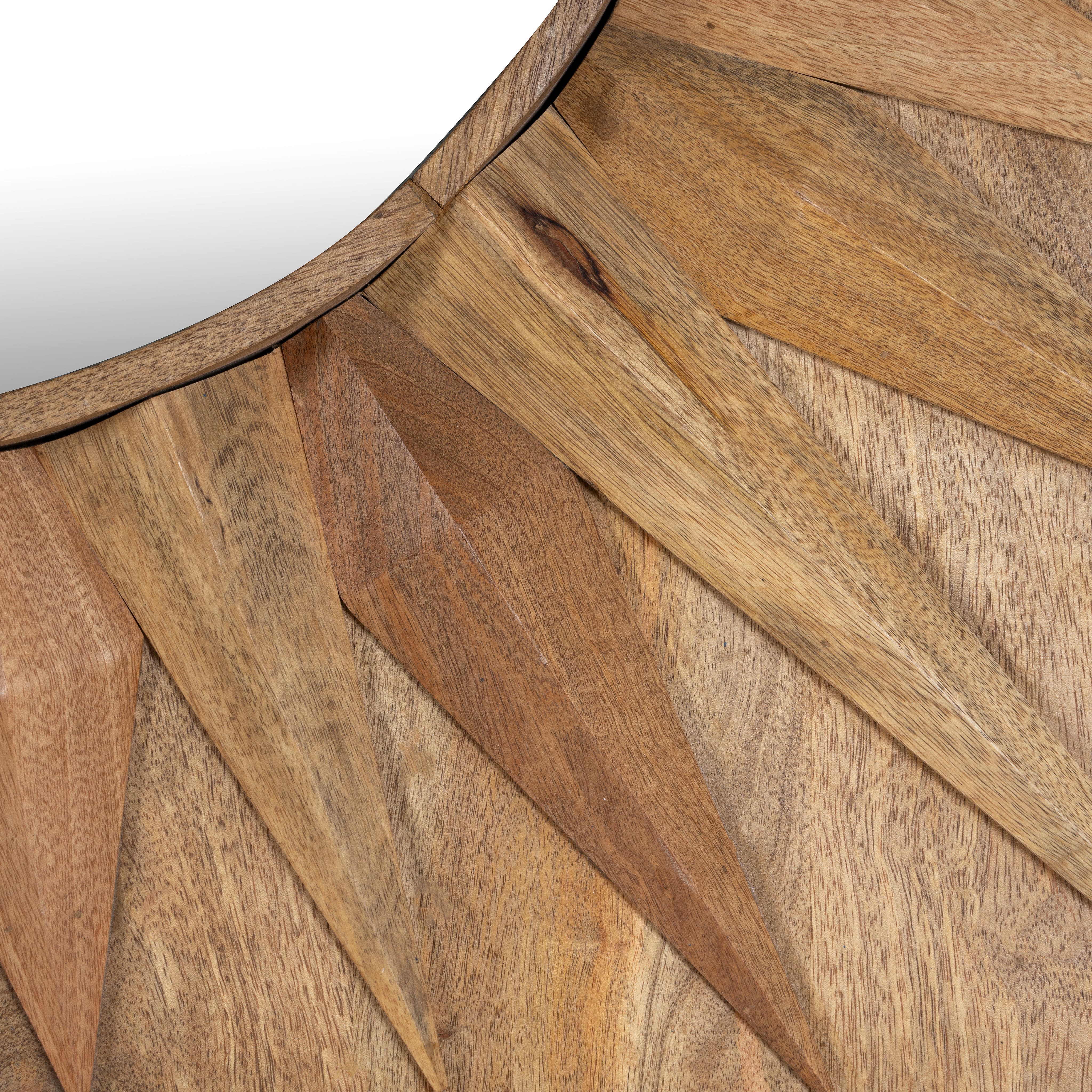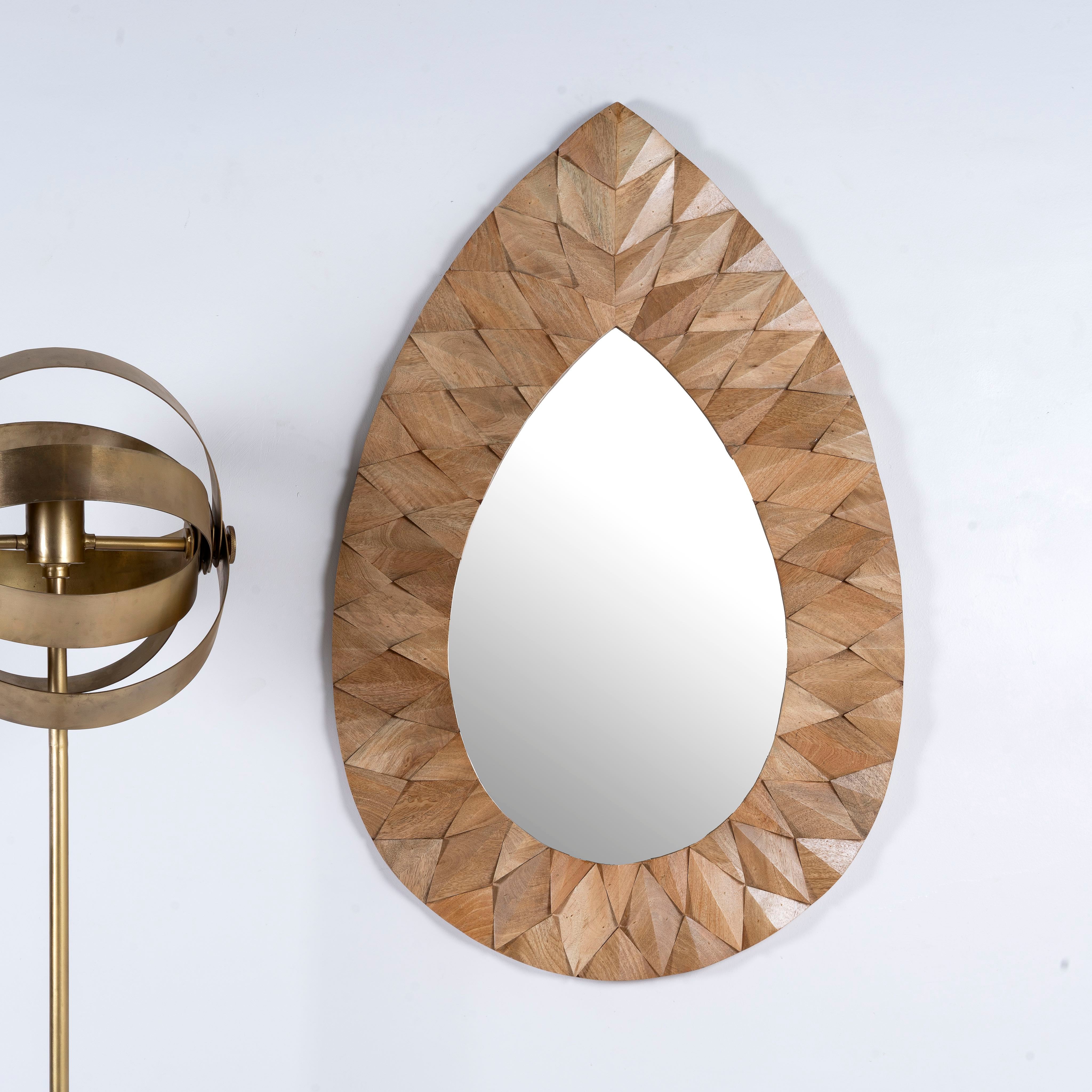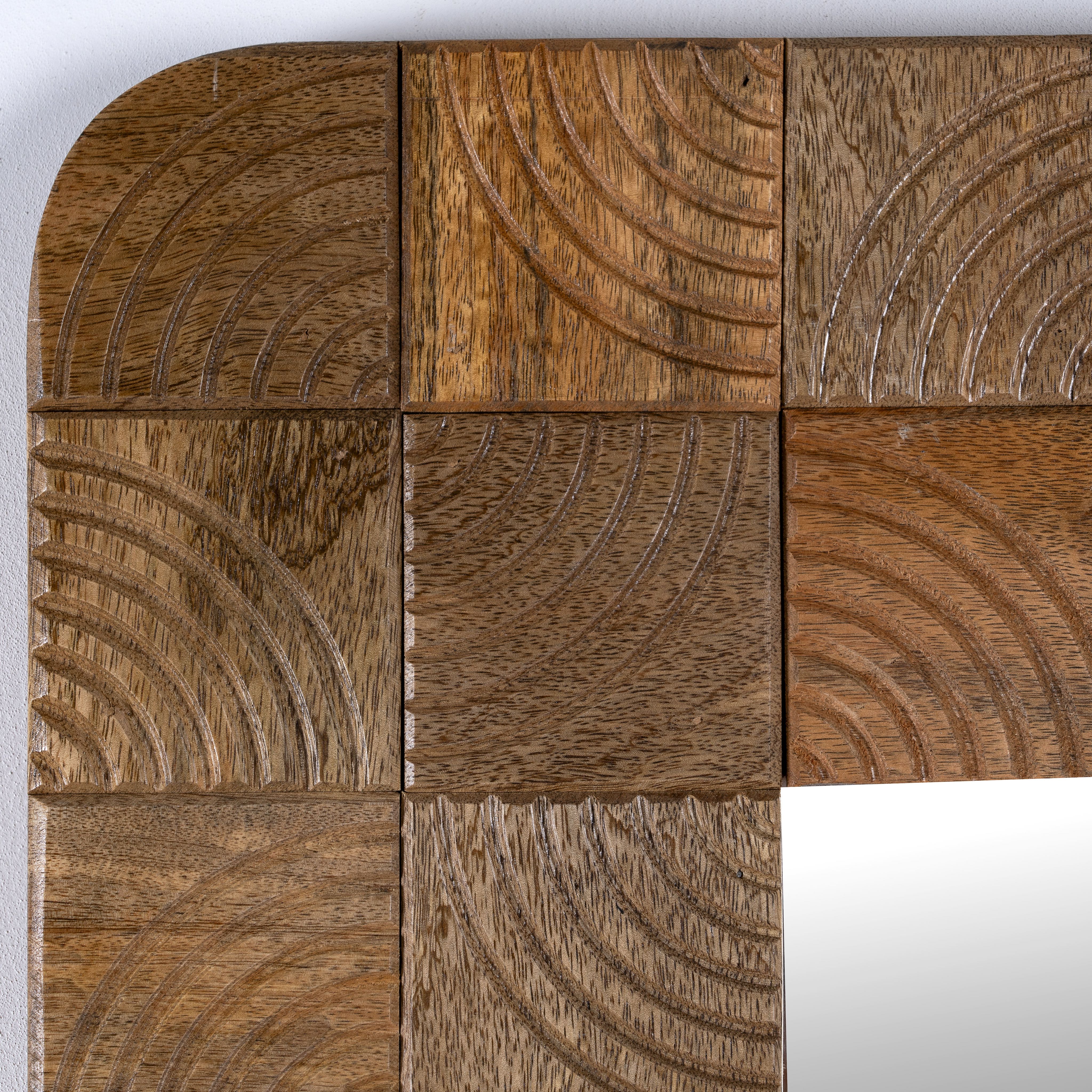 At Om Home & Garden, we ensure that our Oriental tables, chairs, and other furniture are not cheap imitations of Indian style but are authentically designed and made in India. To achieve this, our furniture and accessories are made from exotic materials with a lot of precision in craftsmanship. The frames of our Oriental mirrors are made from mango or teak wood. We particularly like to use recycled wood, which already has a story and is given new life with artistic embellishments or in exotic colors. The natural textures of teak or mango wood are retained as much as possible, highlighting the individuality of each mirror.