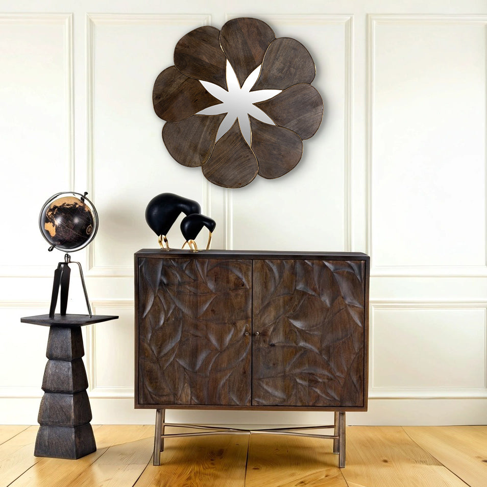Wall Mirror: Typically mounted on a wall, wall mirrors can also simply lean against it. They serve not only as a practical tool for viewing your reflection but also have significant decorative value. Wall mirrors, for example, are a popular way to enliven empty walls and give rooms more depth by casting light into darker corners. Oriental wall mirrors usually feature an artfully crafted frame, which may be adorned with wood carvings, decorative metal elements, or Oriental colors.