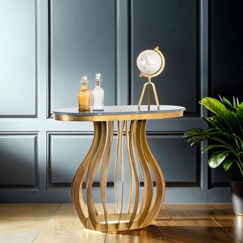 A narrow, elegant console table with artistic embellishments is an eye-catcher in the hallway or other narrow areas. It not only offers storage space but also gives the room a subtle, exotic note.