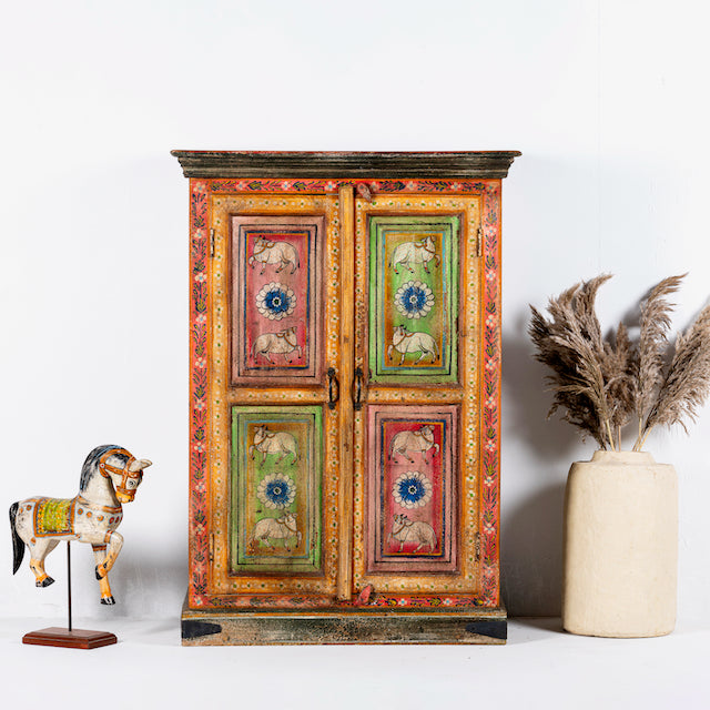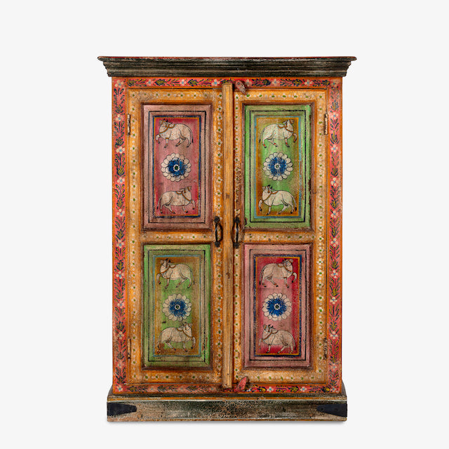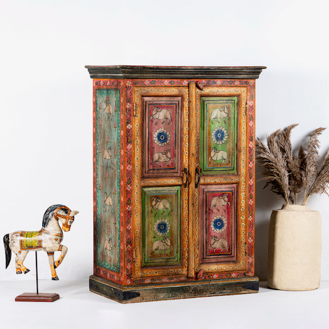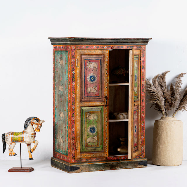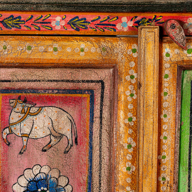 Linnenkast Ghatal is made from recycled wood and elaborately hand-painted with Indian god motifs.