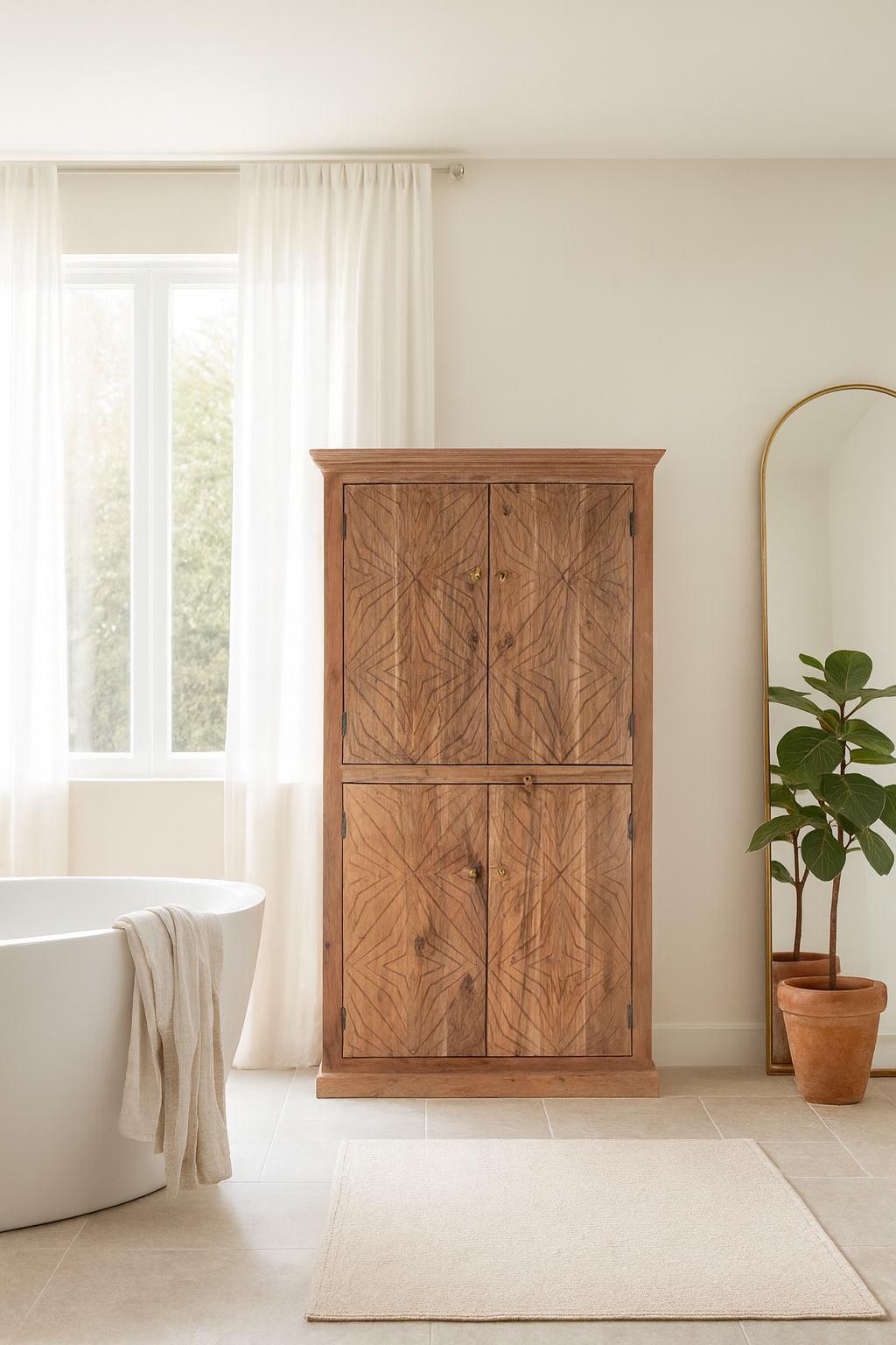 • Style: A statement carved wood wardrobe that fits seamlessly into rustic, bohemian, or modern homes