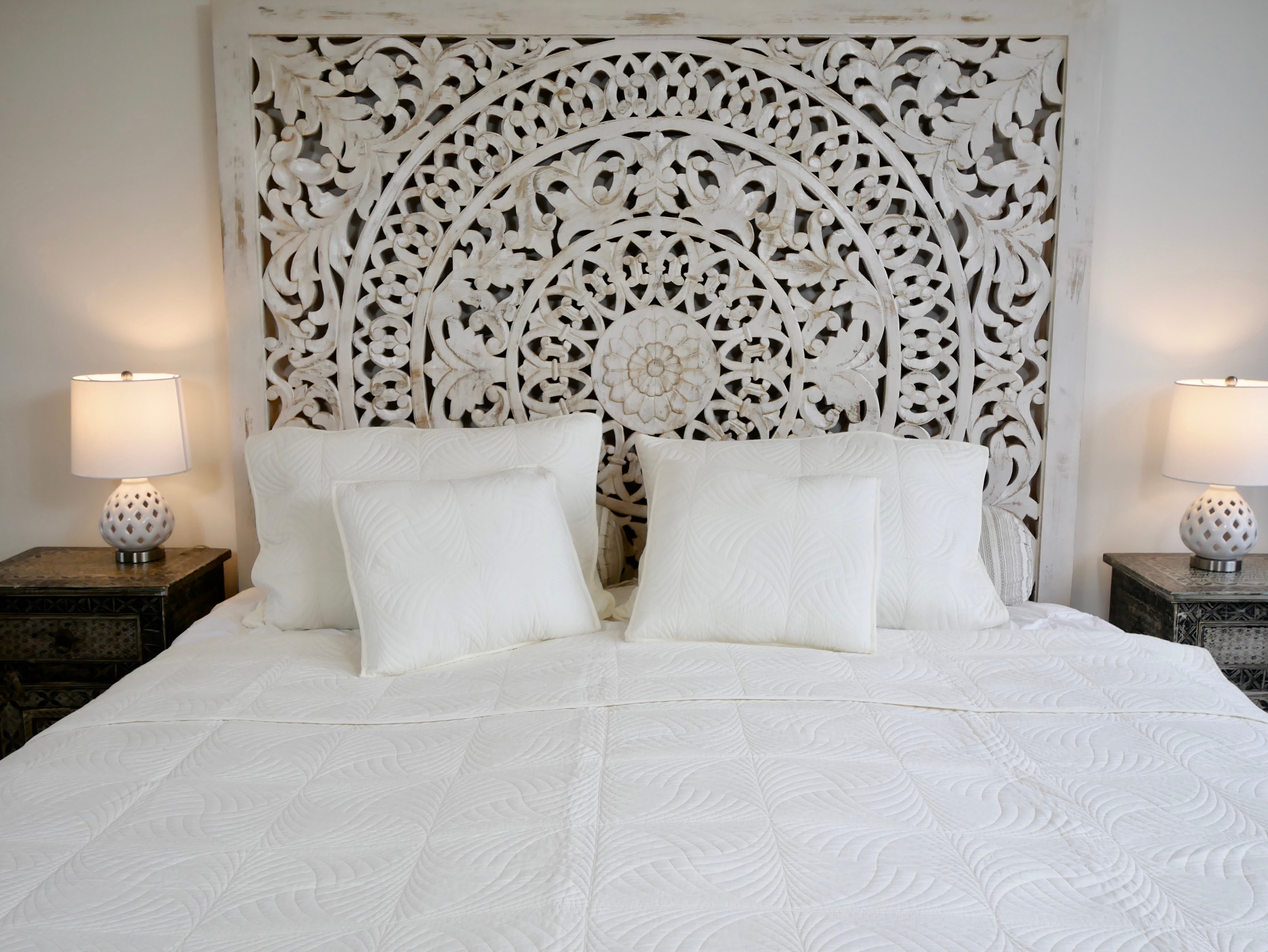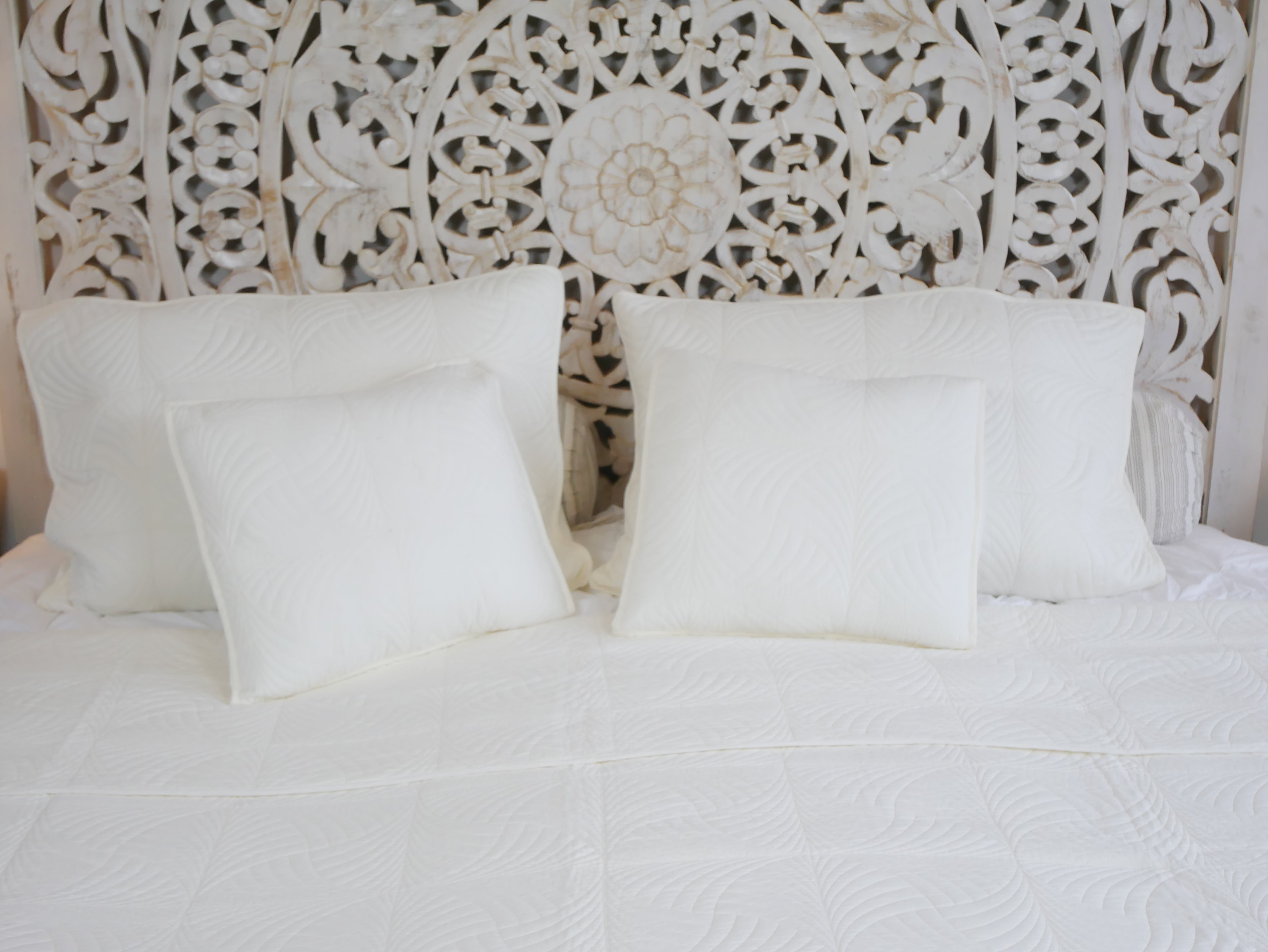 This bed cover made of 100% unbleached natural cotton is richly embroidered and comes in a set with two with 2 small and 2 large pillowcases.