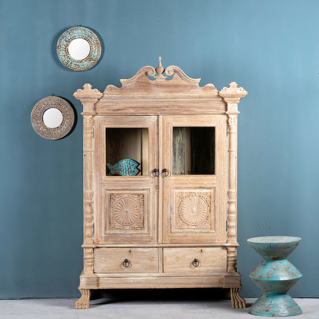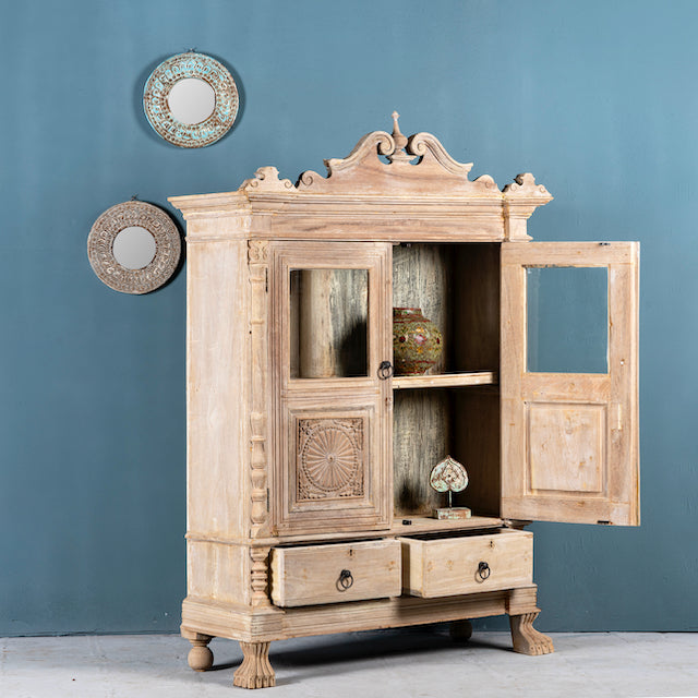 This showcase combines traditional craftsmanship with modern styling, making it an ideal choice for those who value unique furniture with a story.