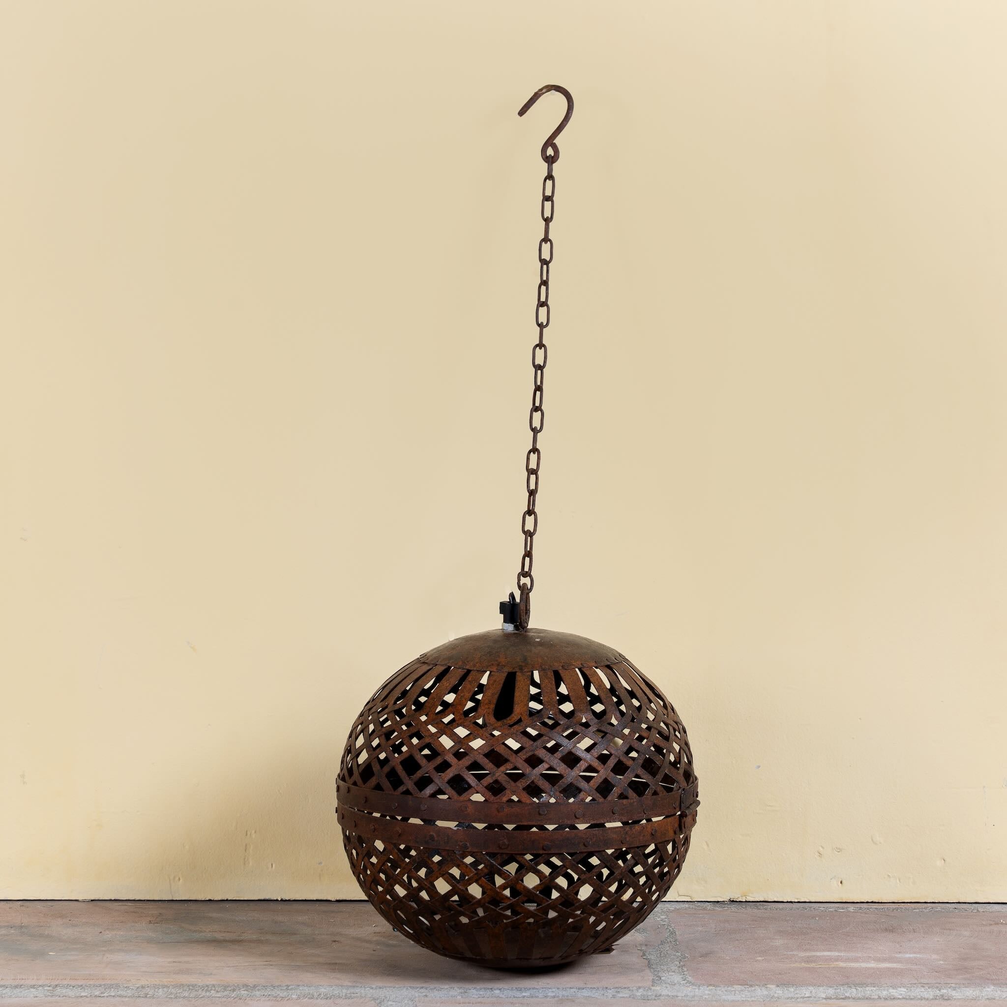 Its spherical shape features intricate openwork lattice detailing, allowing the light to cast soft, patterned shadows across walls and ceilings. As part of our artisan collection of metal pendant lights, Champa is a unique expression of hand crafted metal lamps where industrial design meets handcrafted soul.