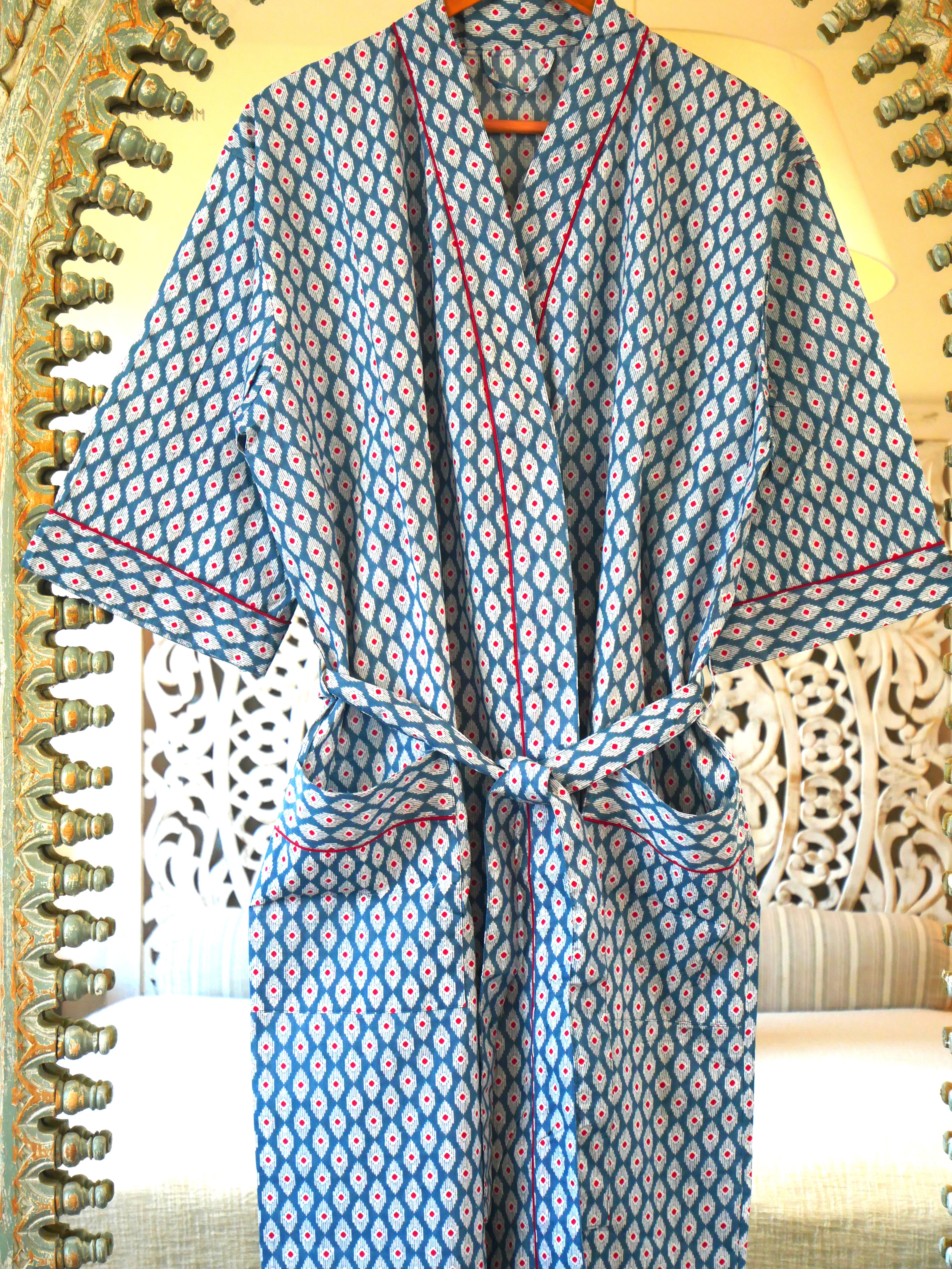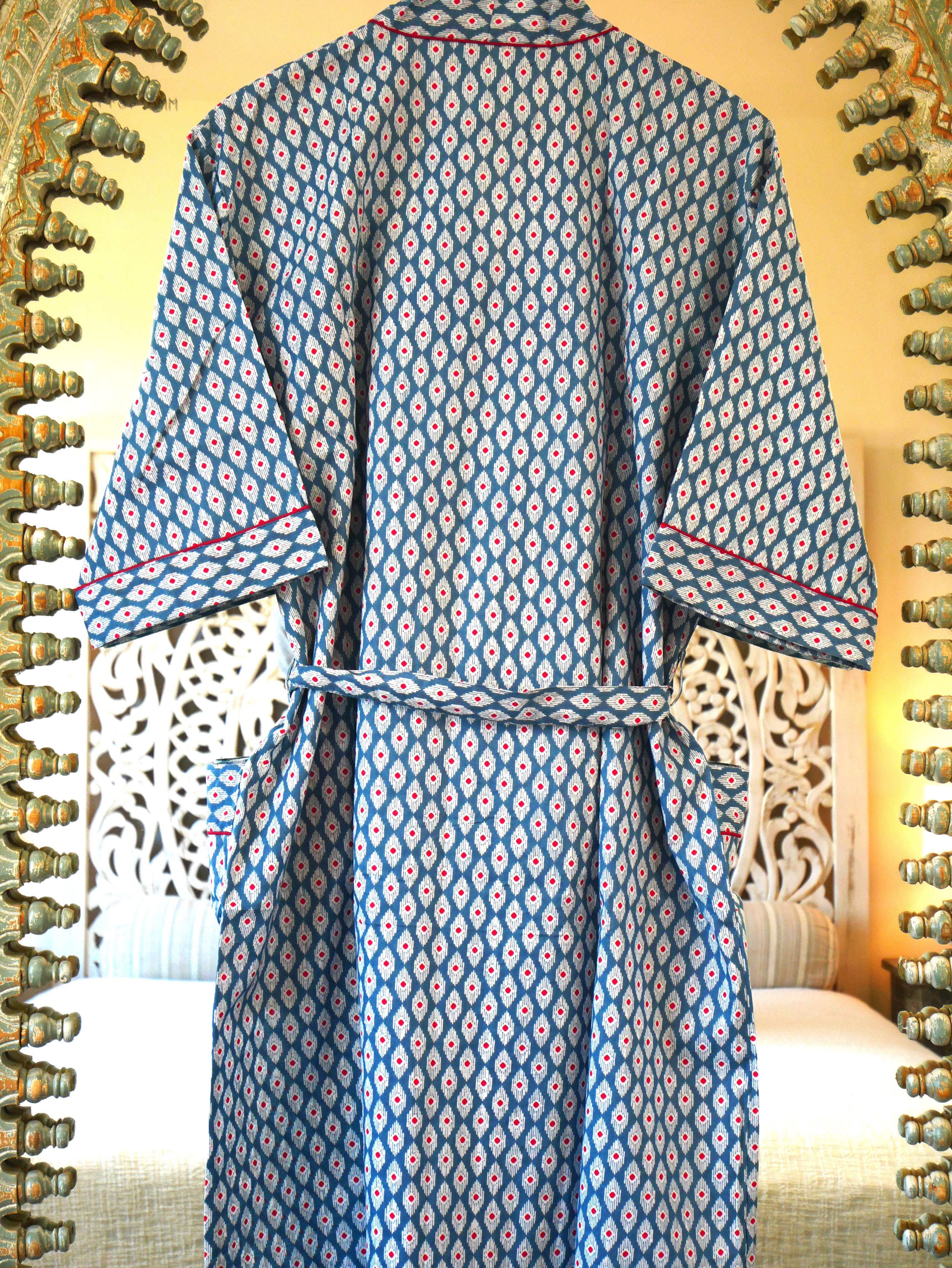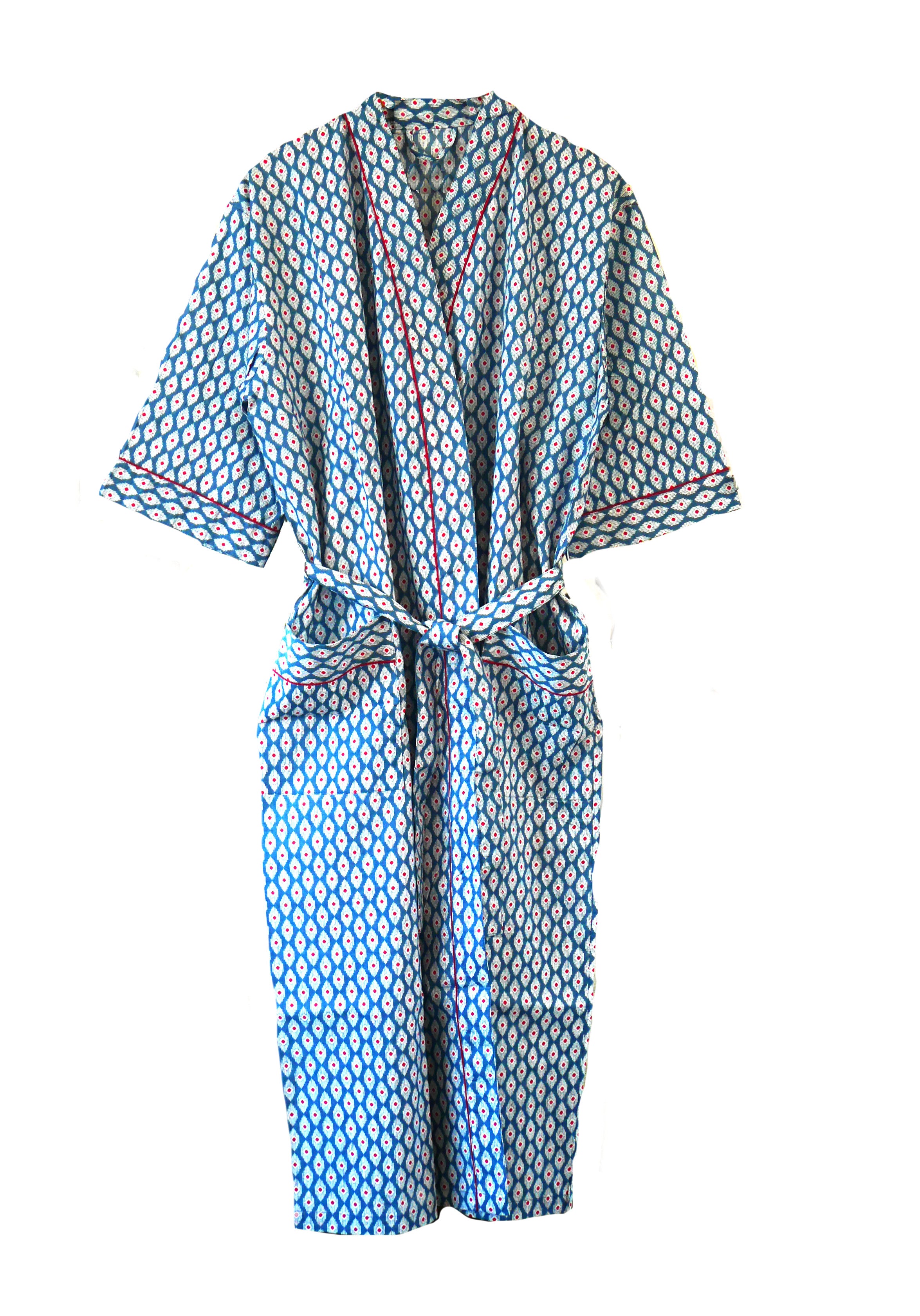 Wrap yourself in the vibrant beauty of our morning robes, sourced directly from India and crafted from 100% cotton. Each robe boasts a variety of colours and designs, blending traditional Rajasthani patterns with modern floral motifs. These robes are not just a testament to exceptional craftsmanship but also a celebration of cultural heritage and contemporary style. Ideal for lounging or adding an exotic touch to your morning routine, our robes promise comfort and elegance in every thread.