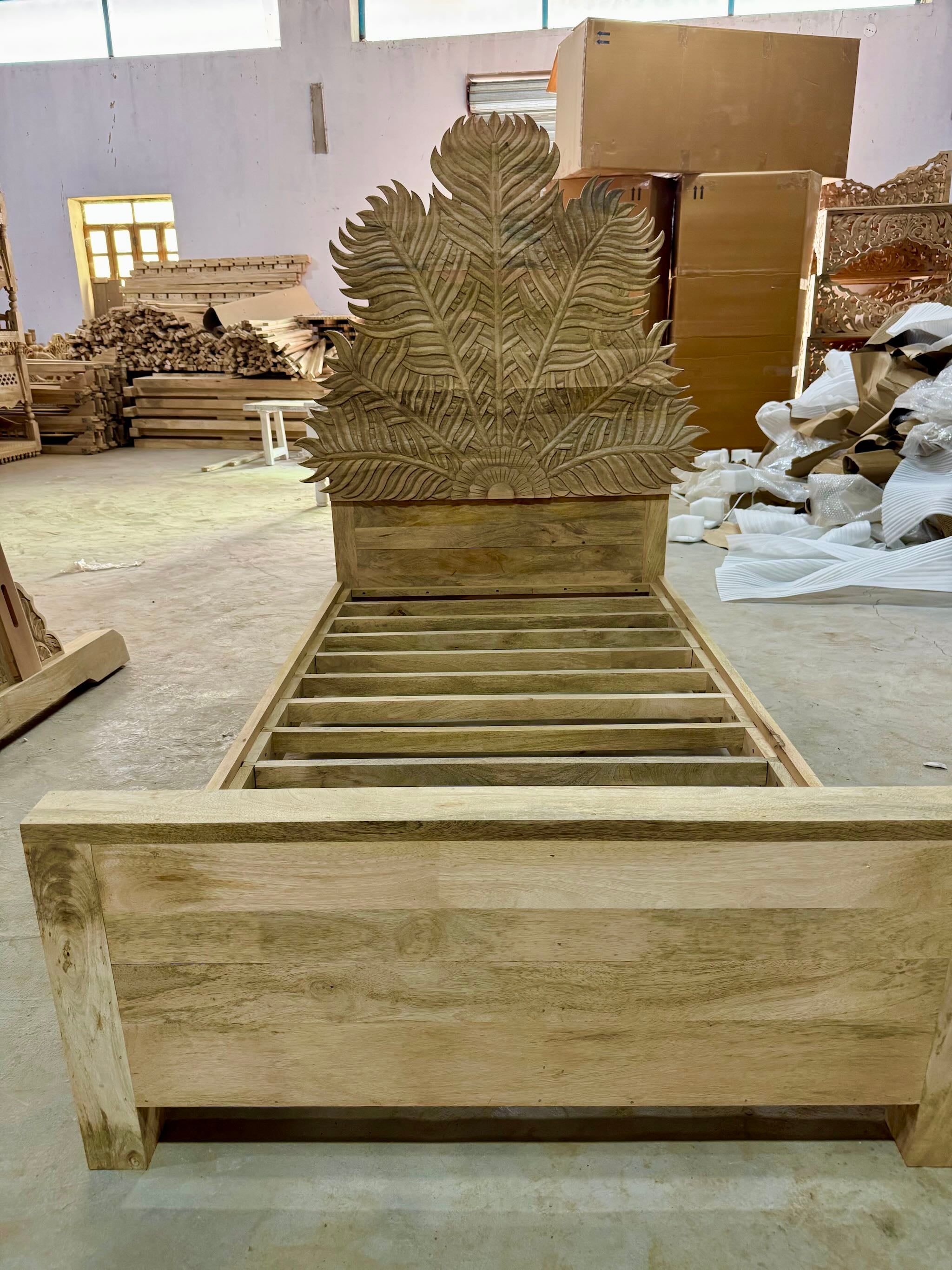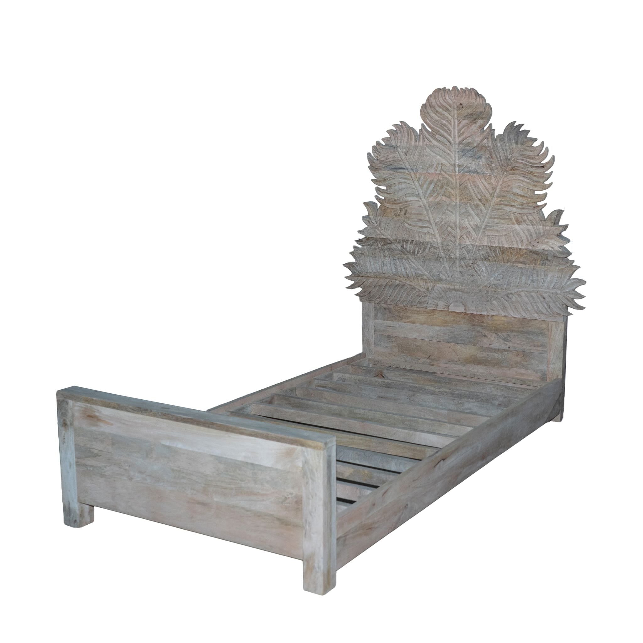 Farn- Hand Carved Single Bed Frame Mango Wood 90x200cm